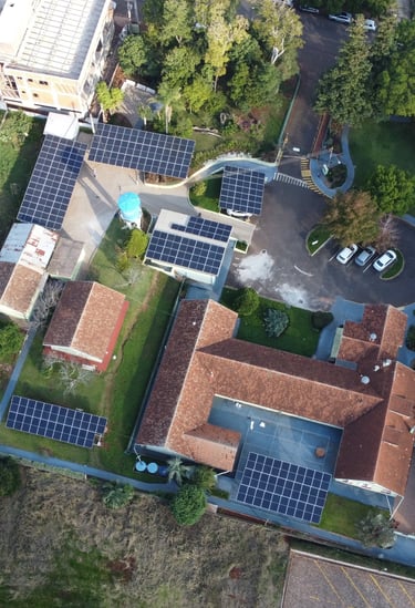 A equipe da Solare desenvolveu todo o projeto, desde dimensionamento, locação das estruturas para preservar a rede hidráulica e as características do terreno com curvas de nível que servem para captação da água da chuva, desenvolvimento do projeto elétrico e executivo, projeto civil de estaqueamento, homologação na concessionária e gestão da execução da obra.
